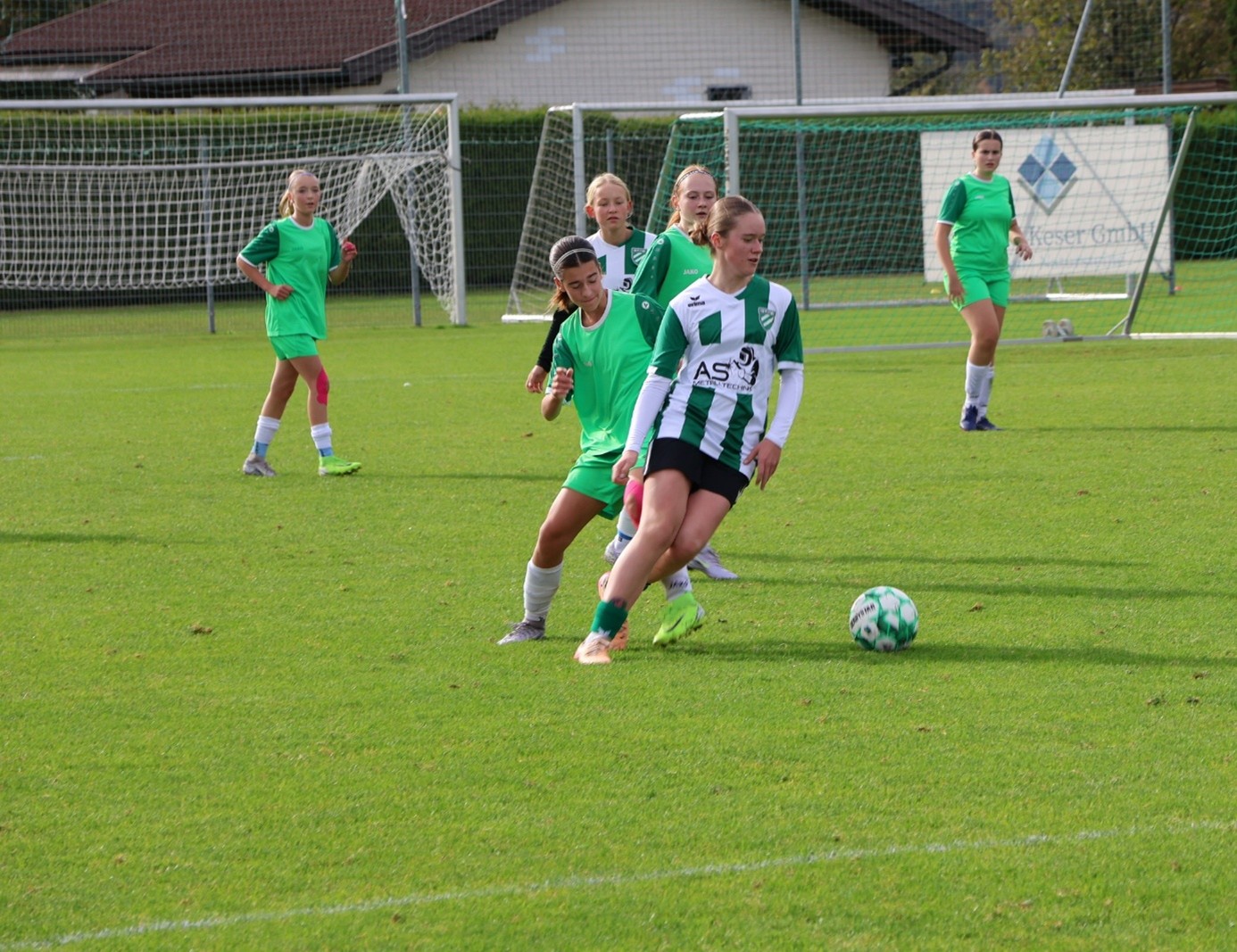 Nach Wiederanpfiff entwickelte sich ein ähnliches Bild. Die Gäste kontrollierten zunehmend das Spiel, hatten mehr Ballbesitz und drücken der Partie nun ihren Stempel auf. Folgerichtig ergaben sich weitere Möglichkeiten für die Spielgemeinschaft. In der 24. Minute konnte ein Torabschluss der Gäste noch durch die Abwehr der Oberalmerinnen geblockt werden, Julias Nachschuss war dann aber für die Torhüterin der Gastgeberinnen nicht mehr zu parieren, woraus das 0:2 in dieser Begegnung resultierte.